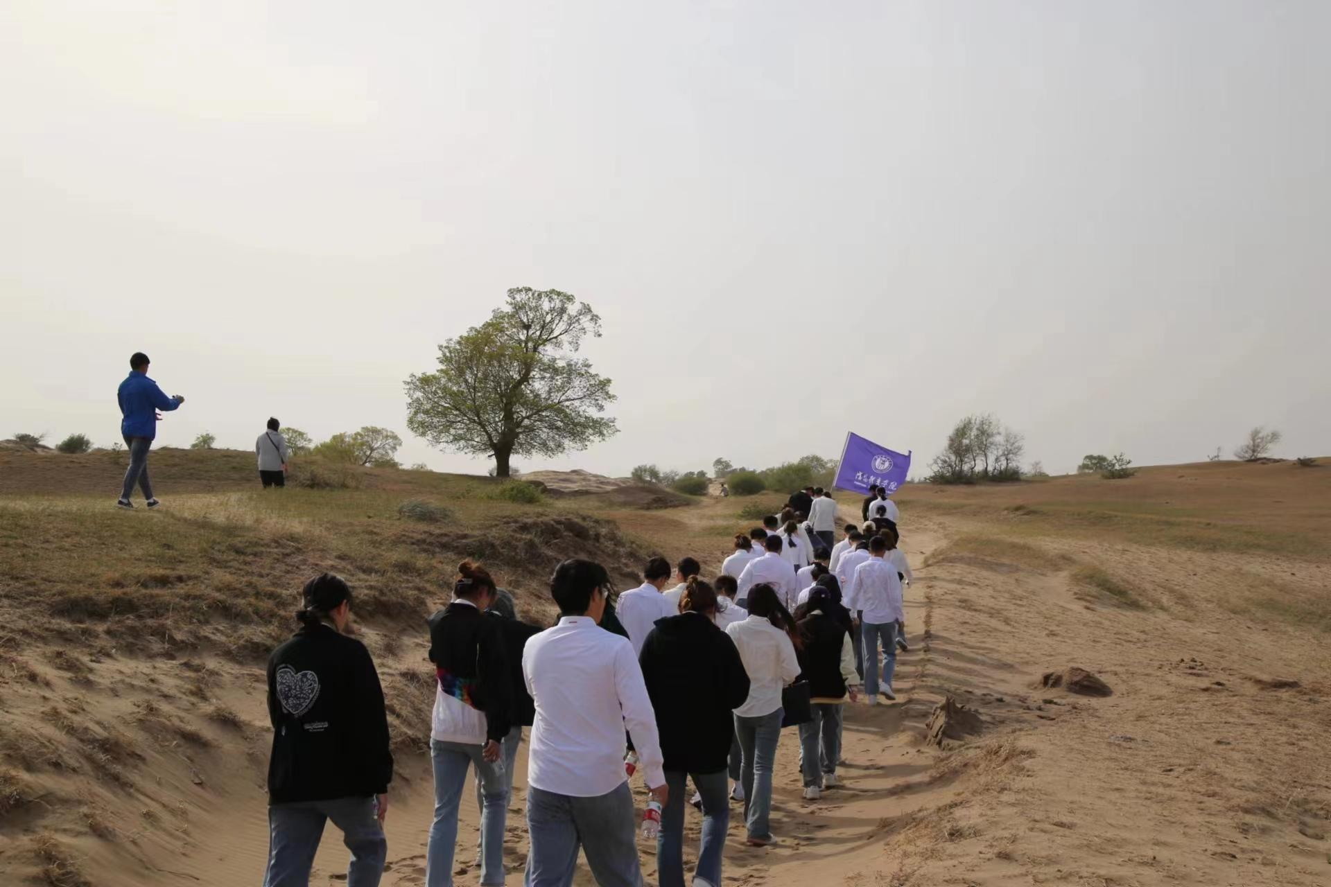 随后全体学生骨干们前往边界林体验沙地徒步。