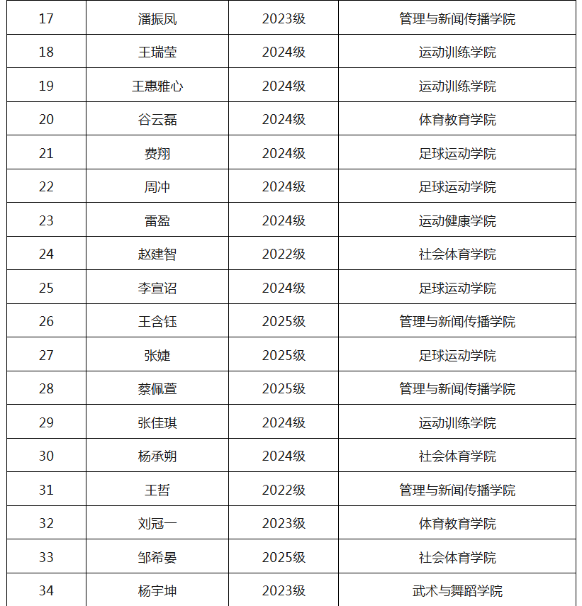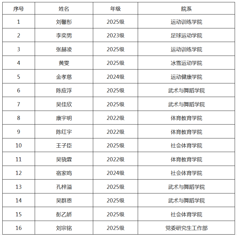 沈阳体育学院 2023-2024 学年共青团“两先两优”和“优秀青年志愿者、服务队”“优秀社团干部、成员”评选结果名单公示