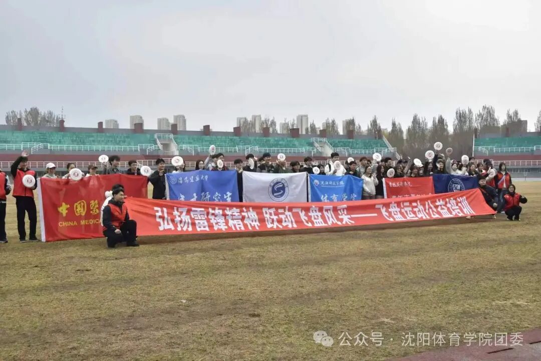 春雨润物,青春逐梦。2026年3月29日,沈阳团市委志工部、沈阳体育学院学团委联合主办,沈阳飞盘协会、沈体飞盘社团协办的“弘扬雷锋精神 跃动飞盘风采”飞盘运动公益培训活动在我校田径场顺利举办。来自全市14家单位的70 余名青年齐聚一堂,以飞盘为媒,践行雷锋精神,绽放青春风采。